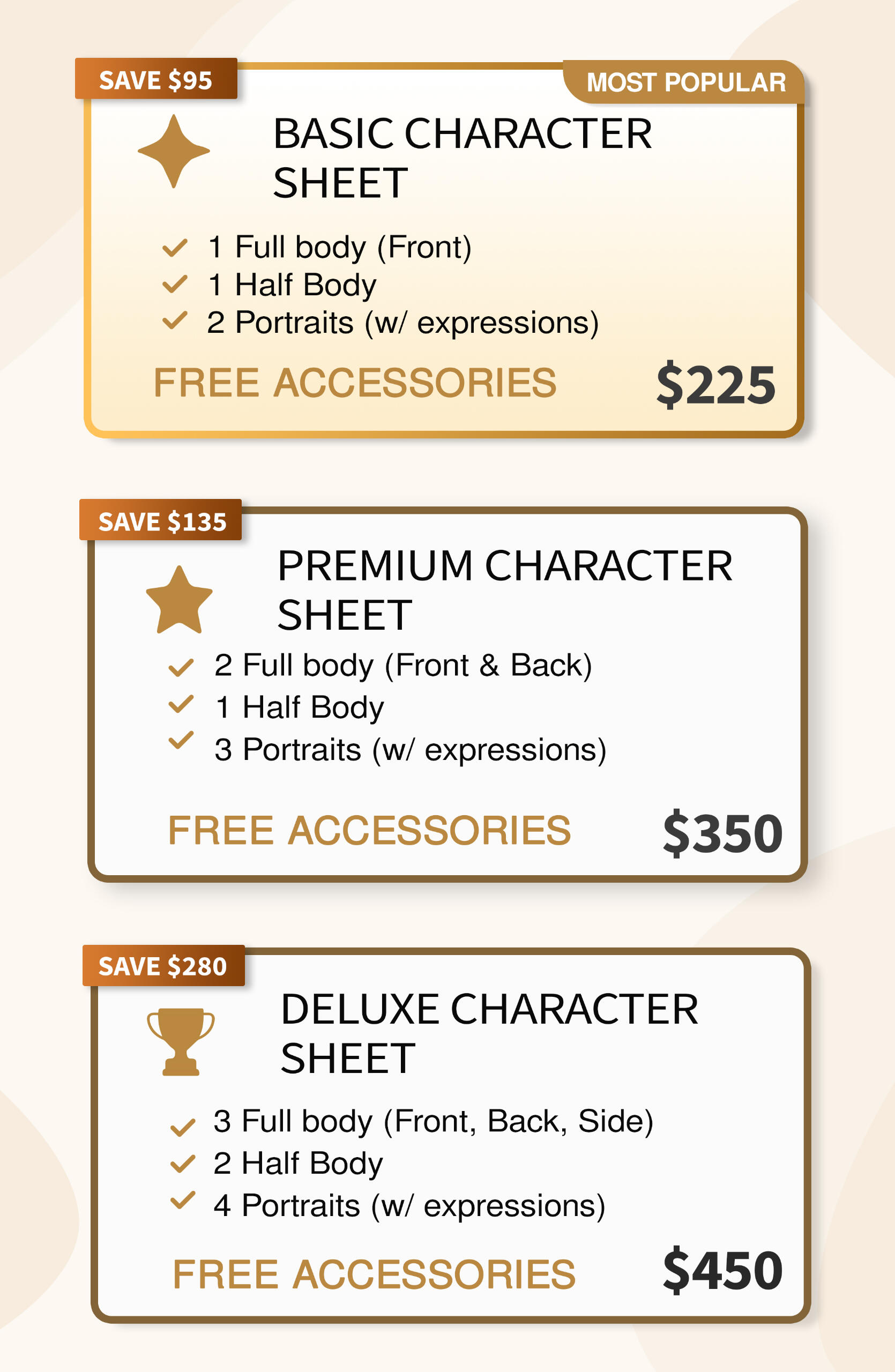 Character Sheet Price list
